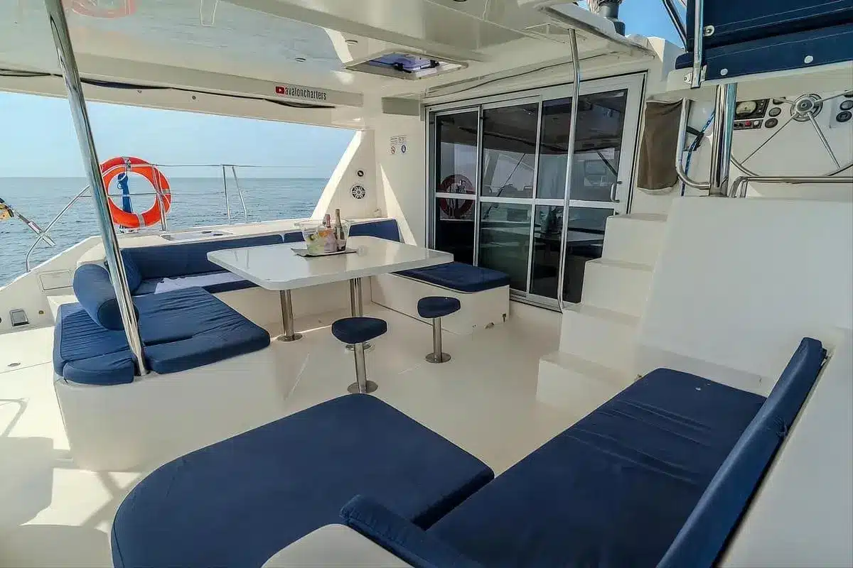 El Catamarán Avalon One 48 FT redefine el concepto de navegación privada en Cartagena gracias a su estructura de doble casco, que proporciona mayor estabilidad y amplitud frente a embarcaciones tradicionales.
