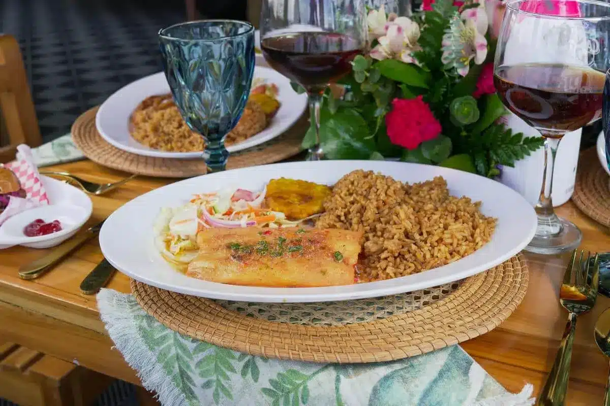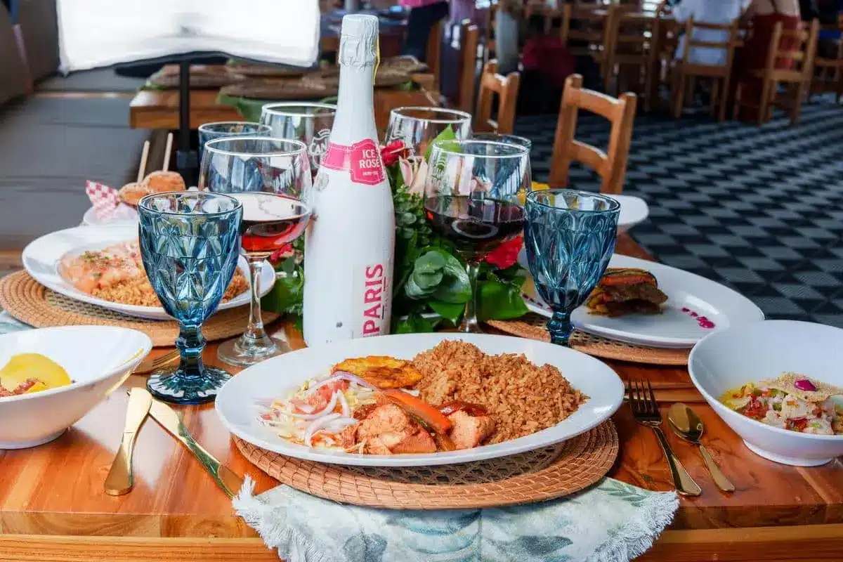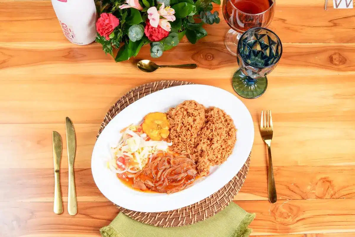 Todos los platos se sirven acompañados de ensalada fresca, arroz de coco y patacón.