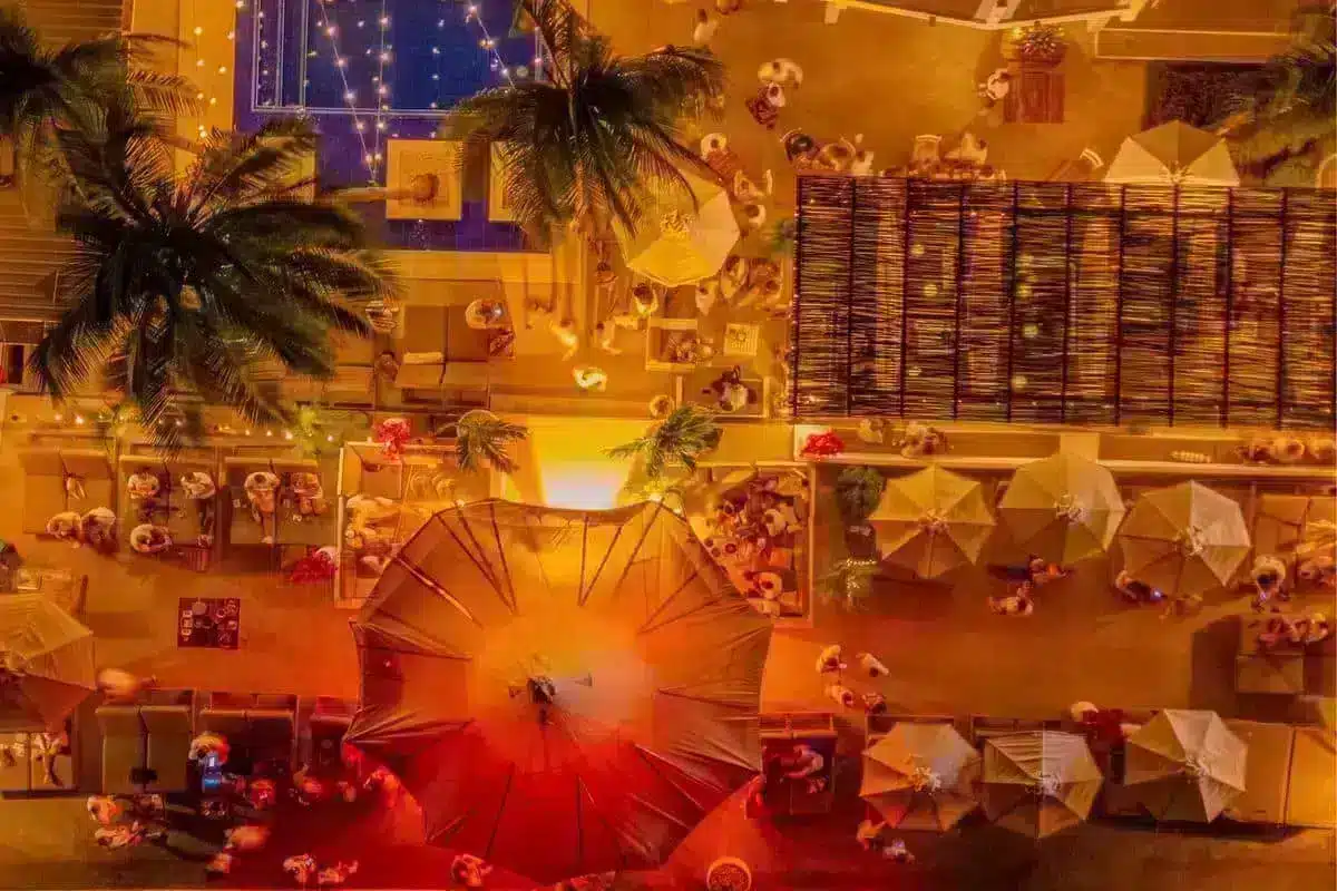 Esto te permite disfrutar tanto del ambiente diurno, con sol y playa, como de la atmósfera nocturna con música y luces que transforman el lugar en una fiesta exclusiva.
